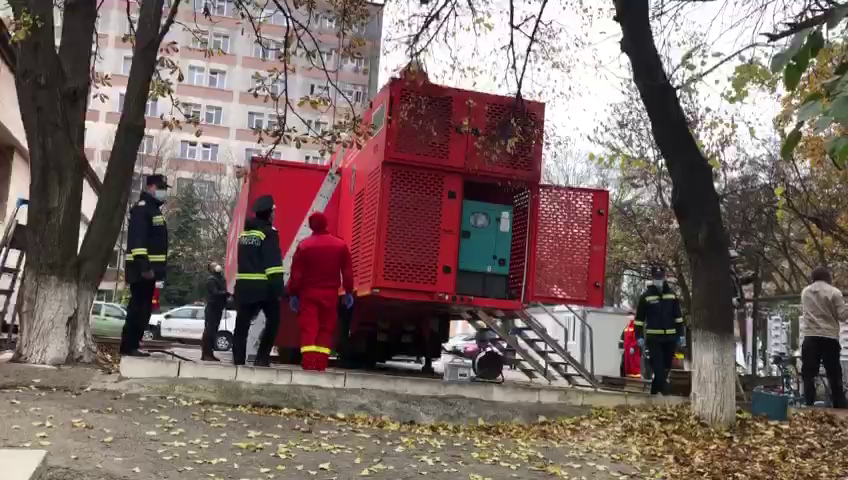 Pregătiri la unitatea mobilă pentru bolnavi covid.