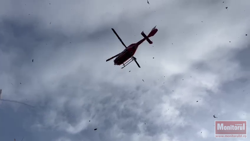 Elicopterul pleacă cu bolnavul. Bine că avem heliport.