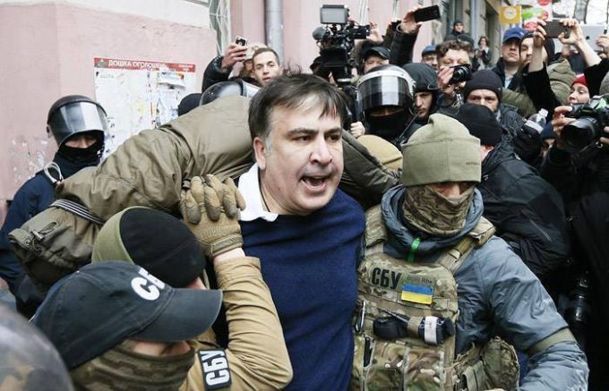 Fostul președinte al Georgiei, opozant declarat al lui Poroșenko după ce acesta i-a retras cetățenia ucraineană, fusese reținut pentru scurt timp marți dimineață în urma unei percheziții la domiciliul său din Kiev, în cadrul unei anchete penale despre care Saakașvili susține că este o înscenare făcută la ordinul președintelui ucrainean. El a fost eliberat sub presiunea sutelor de susținători care au blocat furgoneta care îl transporta.