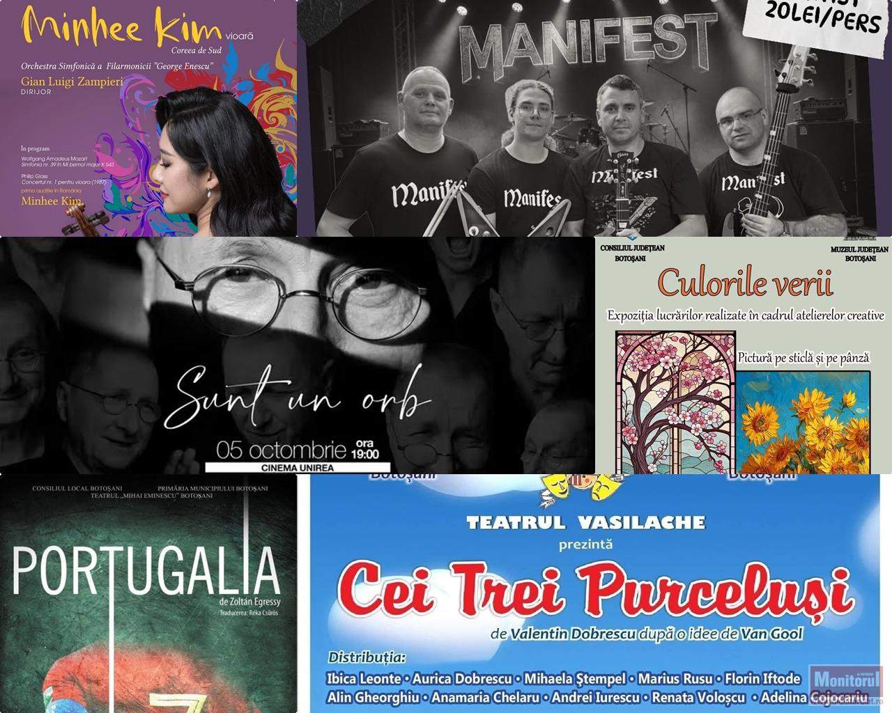 Weekend-ul 3 – 5 octombrie promite un adevărat maraton cultural pentru botoșăneni! De la spectacole de teatru și concerte simfonice, până la vernisaje și rock local, orașul devine scena unor evenimente pentru toate gusturile.