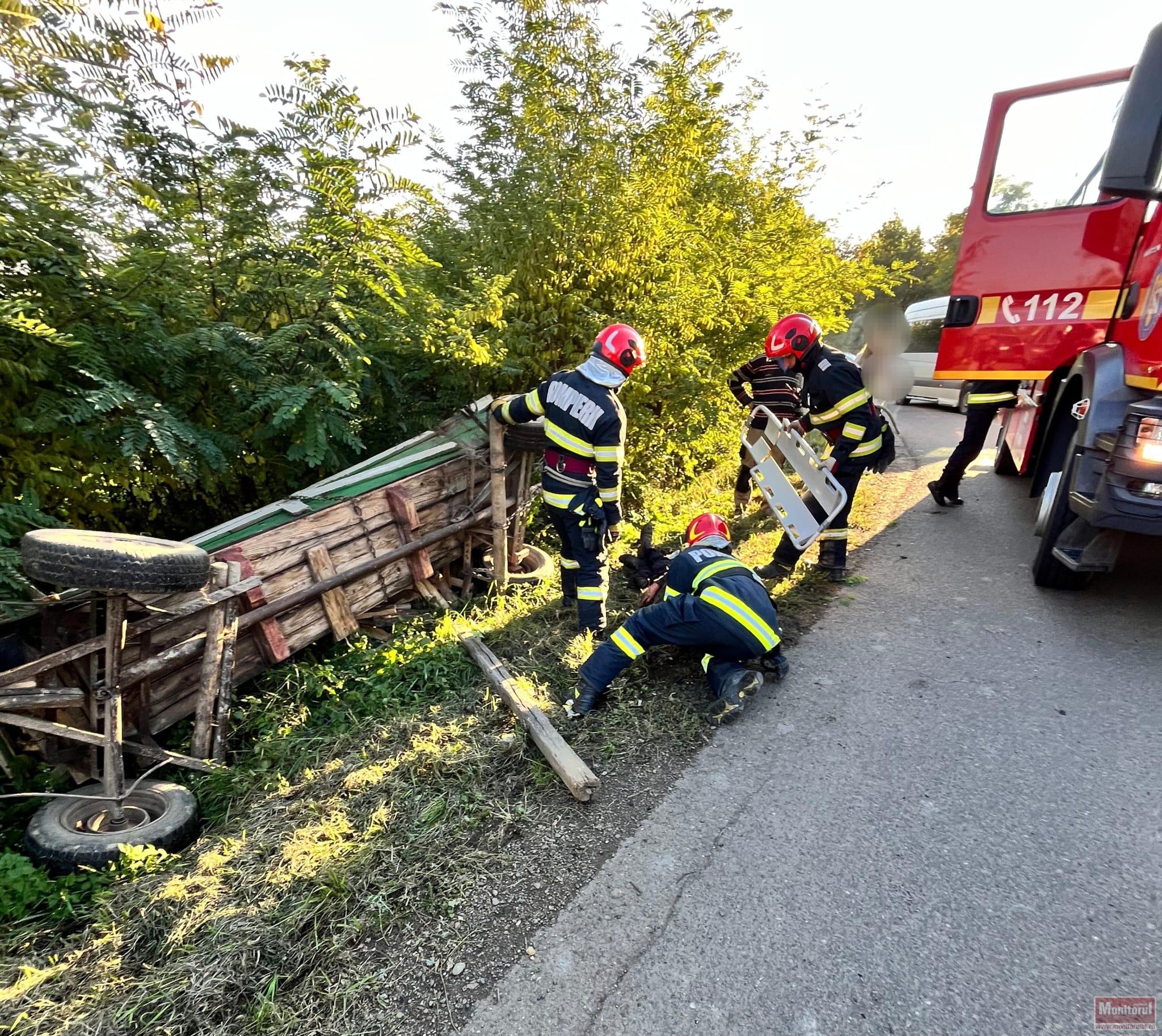Un bărbat, în vârstă de 53 de ani, a fost salvat de pompieri, după ce a fost prins sub o căruță încărcată cu lemne. Evenimentul a avut loc în localitatea Iezer, în această după-amiază.