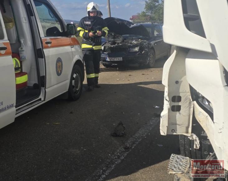 Incidentul a avut loc vineri dupa-amiază la intersecția drumului European E58 cu drumul Județean ce duce spre Huțani.