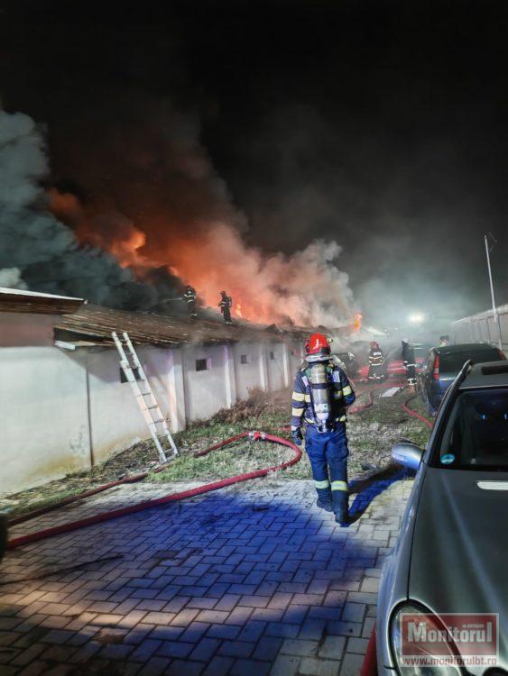Incendiul a afectat două hale aflate la distanță una de cealaltă, cu destinații diferite. Prima hală, în care erau depozitate materiale de construcții și textile, este afectată pe o suprafață de aproximativ 1000 mp. A doua hală, cu funcționare multiplă (atelier auto, magazii cu materiale plastice și textile, precum și acoperișul unui atelier de tâmplărie), este cuprinsă de flăcări pe o suprafață similară.
