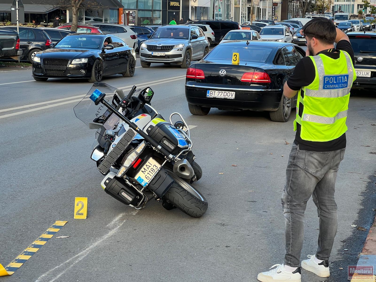 Polițist pe motocicletă, implicat într-un accident în centrul Botoșaniului (VIDEO)