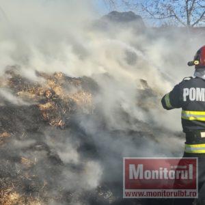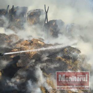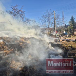 Alarma a fost dată chiar de proprietar, care a observat că iese fum din mijlocul depozitului de furaje.