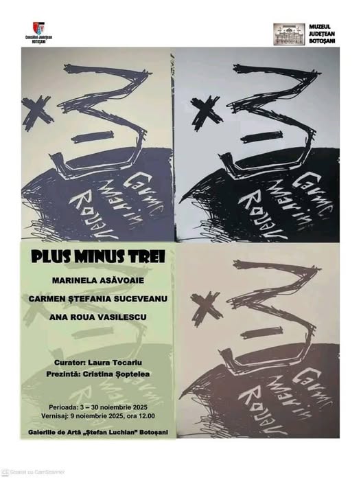 Muzeul Județean Botoșani deschide, în perioada 4–30 noiembrie 2025, expoziția de grup „Plus minus trei”, găzduită de Galeriile de Artă „Ștefan Luchian”.