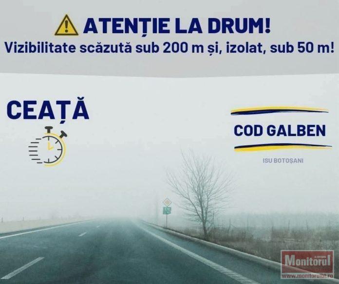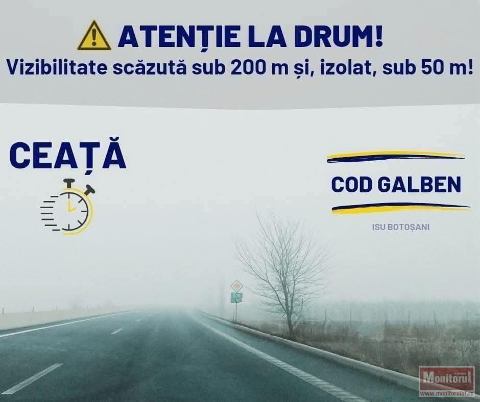 Meteorologii au emis un cod galben de ceață valabil astăzi, până la ora 10:00, pentru județul Botoșani.