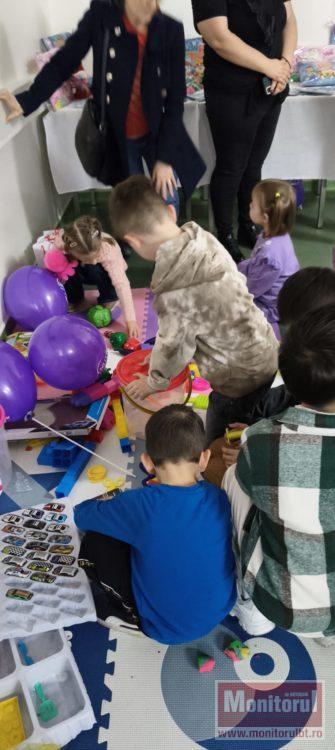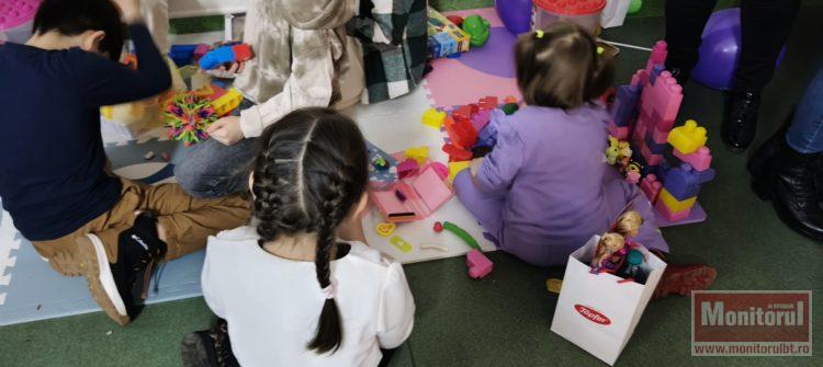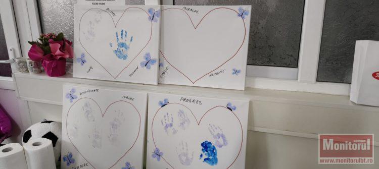 Micuţii s-au jucat, s-au fotografiat la studioul foto amenajat în hol şi chiar şi-au putut lăsa amprentele colorate ale mâinilor pe un panou cu inimi special pregătit în acest sens.