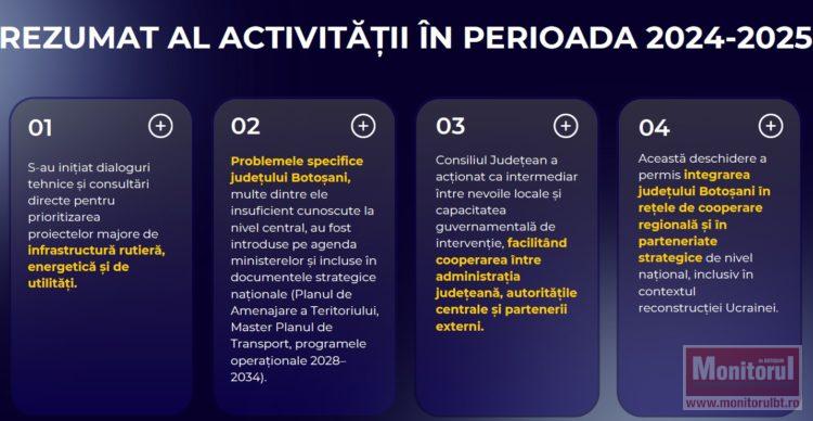 După prezentarea nevoilor judeţului, raportul CJ menţionează, în patru paşi, ca un rezumat al activităţii pe un an, ce s-a făcut pentru a schimba situaţia Botoşaniului.