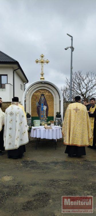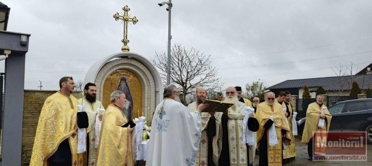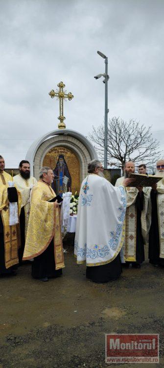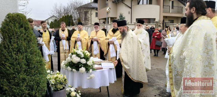 Momentul religios a fost oficiat de un sobor de 11 preoţi, condus de părintele protopop Petru Fercal. Inedit la slujba de marţi a fost faptul că aceasta a avut loc pe o stradă care poartă numele sfântului Cleopa, alături de icoana închinată sfântului şi în ziua pomenirii acestuia în calendar.