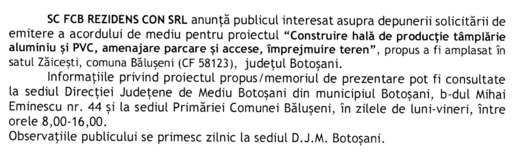 Acord de mediu – SC FCB REZIDENS CON SRL