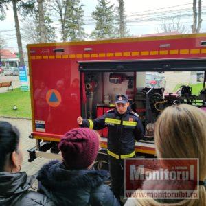 Un moment aparte a fost prezentarea autospecialei de hidroperforare, un echipament mai puțin cunoscut publicului larg, dar esențial în intervențiile de stingere a incendiilor în zone greu accesibile. Pompierii le-au arătat asistenților accesoriile din dotare și rolul fiecăruia în misiuni.