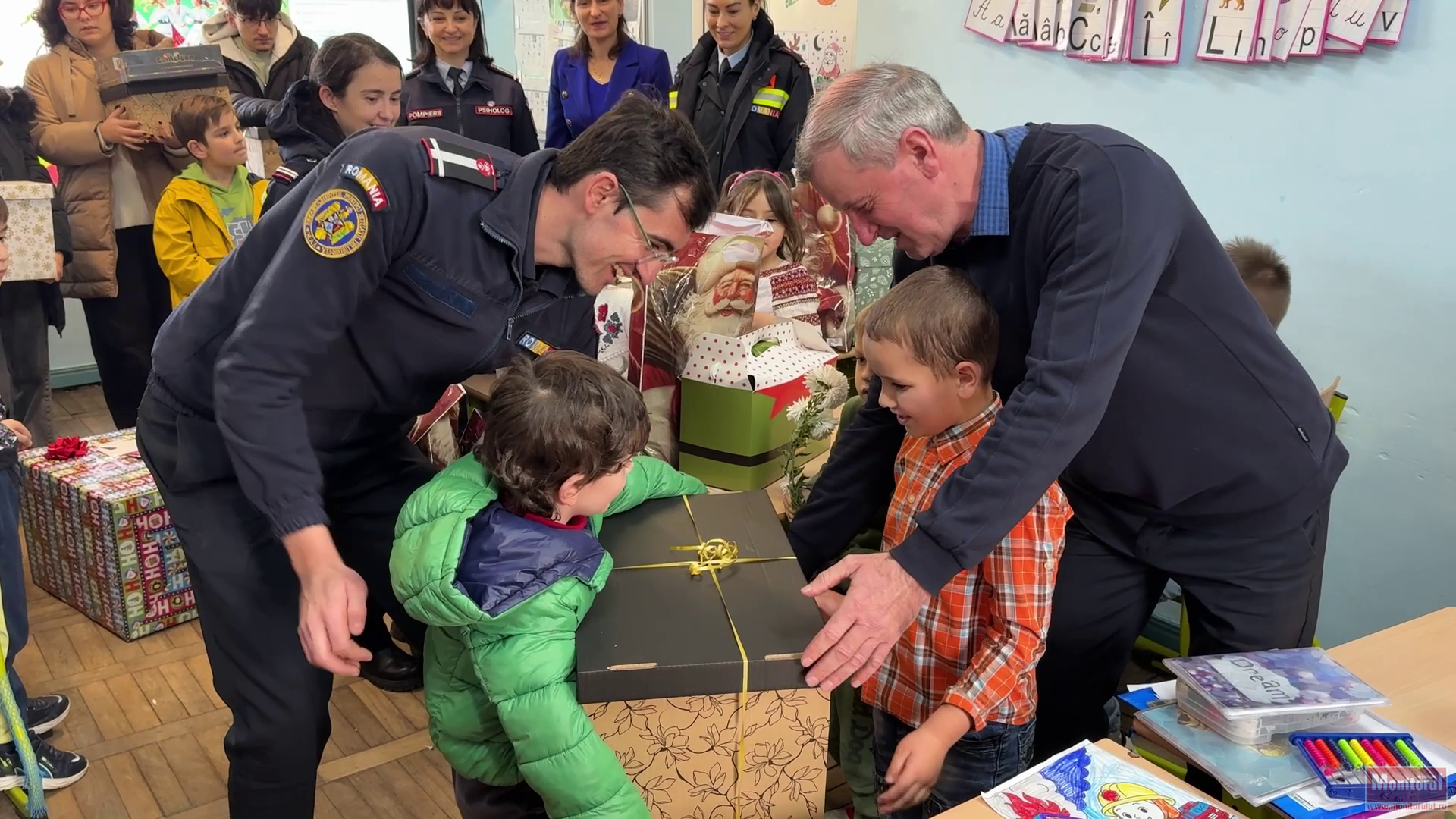 În sălile de clasă, copiii pompierilor au pregătit scrisori și cadouri cu o migală care ar fi impresionat orice Moș. „De Moș Nicolae noi am pregătit niște cadouri pentru niște copii”, a spus o fetiță. Alți copii au povestit cu entuziasm ce au pus în pachete: „Ghetuțe, hăinuțe, jucării și bomboane. Le ducem ca de Moș Nicolae”. O altă fetiță a explicat că darurile vor ajunge „unui băiețel mai neînstărit, să se bucure”.
