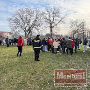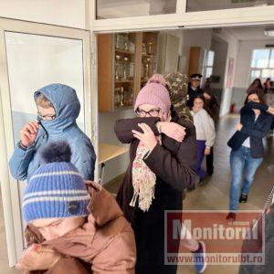 La declanșarea semnalului de alarmă, elevii au părăsit rapid sălile de clasă, în mod organizat și fără incidente, sub coordonarea profesorilor. Copiii s-au deplasat pe căile de evacuare marcate și s-au adunat în punctele de siguranță stabilite din timp, unde s-a făcut prezența pentru a verifica dacă toate persoanele aflate în clădire au reușit să se evacueze în condiții de siguranță.