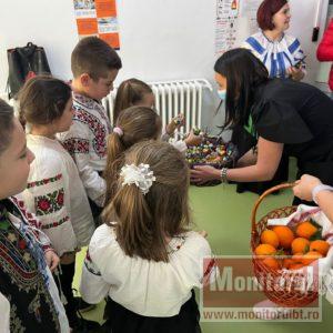 Elevii au împărțit cu zâmbetul pe buze pachete ce conțineau fructe proaspete și dulciuri, încurajând astfel buna dispoziție și optimismul copiilor internați.