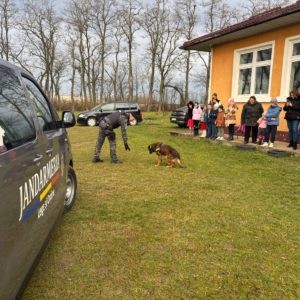 De la întâlnirea jandarmilor cu elevii Școlii Primare nr. 3 Pârâu Negru, din comuna Mihăileni nu a lipsit nici câinele de serviciu Pih, care i-a încântat pe copii prin prezența sa și demonstrația de disciplină canină desfășurată împreună cu conductorul său.