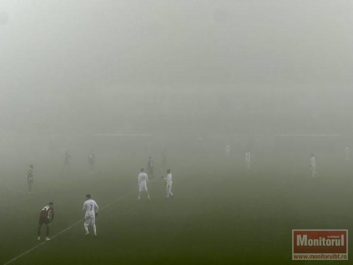 Stadionul Municipal este sub o ceață puternică înaintea startului partidei dintre FC Botoșani cu CFR Cluj.