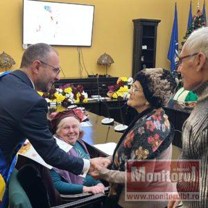 „Suntem încântați să vă avem astăzi aici, în preajma sărbătorilor, ocazie cu care vă felicităm și vă dorim toate cele bune, alături de copiii dumneavoastră, de nepoți, de strănepoți. Avem și cupluri pe care le felicităm astăzi la 60 de ani de căsătorie. Deci putem presupune că au și strănepoți”, a spus primarul Cosmin Andrei, în deschiderea festivității.