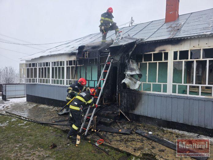 Pompierii au acționat pentru stingerea incendiului care se manifesta într-o încăpere, dar și pentru înlăturarea efectelor.