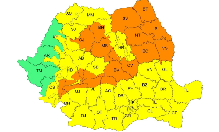 ANM a actualizat prognoza meteo pentru acest sfârșit de săptămână, anunțând noi avertizări pentru aproape întreaga țară. Codul portocaliu de viscol, care inițial viza zona înaltă a Carpaților Meridionali și de Curbură, a fost extins în 12 județe.