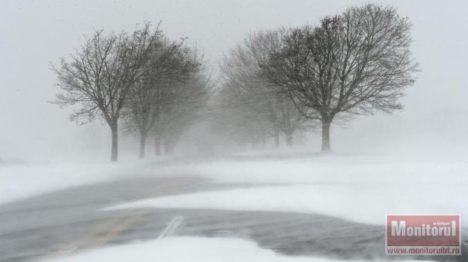 Mâine, între orele 08:00 – 20:00, vântul va sufla cu cu viteze de 50…70 km/h și va ninge viscolit.