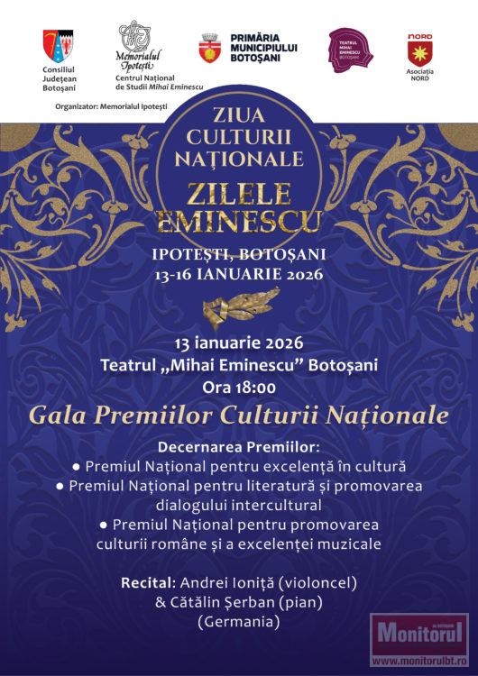 Ediția 2026 a „Zilei Culturii Naționale – Zilele Eminescu” a fost organizată de Memorialul Ipoteşti cu susținerea Consiliului Județean Botoșani, în parteneriat cu Primăria Botoșani, Teatrul „Mihai Eminescu”, Asociația Nord, cu sprijinul instituțiilor de cultură și învățământ și a mediului privat.