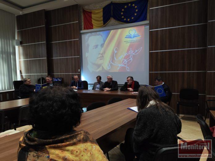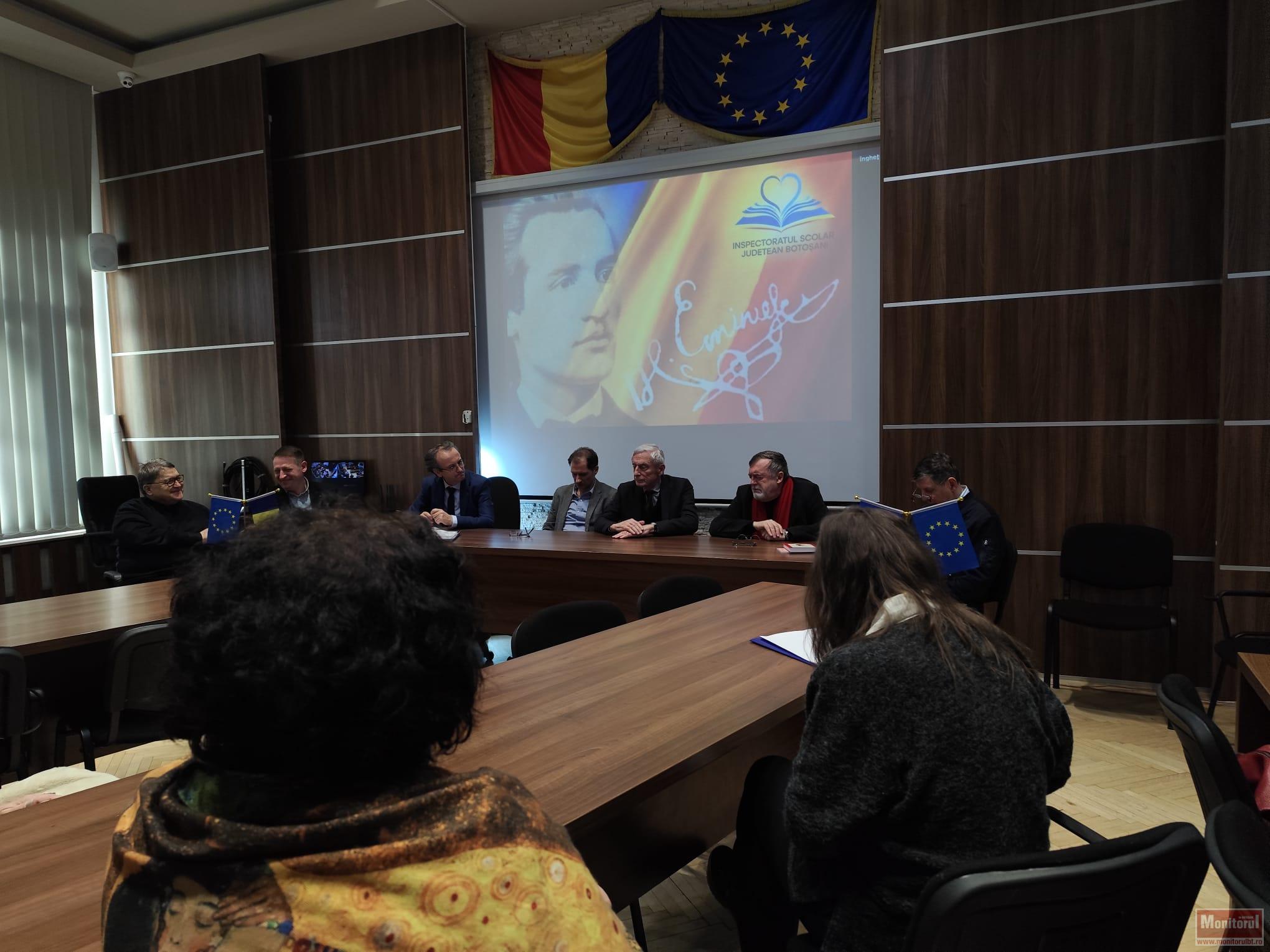 Între orele 12:00 – 13:30, la Inspectoratul Școlar Botoșani a avut loc dezbaterea „15 minute cu Eminescu. O actualitate în criză?”, la care au participat scriitorii Ion Pop, Bogdan Crețu, Adrian Popescu, Matei Vișniec, Iulian Costache. Discuția a fost moderată de Mircea A. Diaconu.