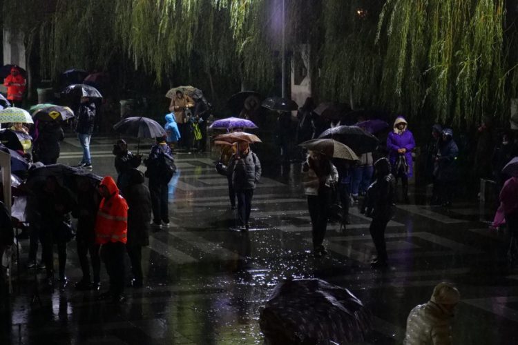 Pe Splai, vântul bătea destul de puternic, iar aerul rece de toamnă îi făcea pe oameni să se strângă unii în alții. Majoritatea pelerinilor aveau capul acoperit cu eșarfe, glugi sau căciuli, încercând să se apere de frig. Femeile erau îmbrăcate gros, multe cu busuiocul strâns la piept, iar unii vârstnici se sprijineau de baston sau de brațul celor dragi.
