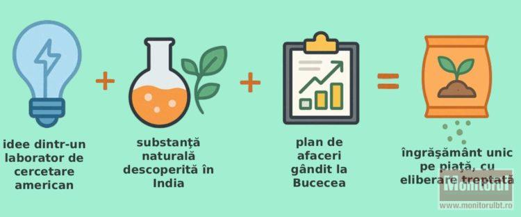Ce vrea să spună fermierul este că în agricultura intensivă asigurarea nutrienţilor este cheia succesului. Asta pentru că azotul, unul dintre elementele vitale plantelor, este „spălat” când plouă sau se evaporă când este soare. Miza pentru cei trei antreprenori a fost să dezvolte un îngrăşământ care asigură constant hrana plantei, indiferent de condiţiile meteo.