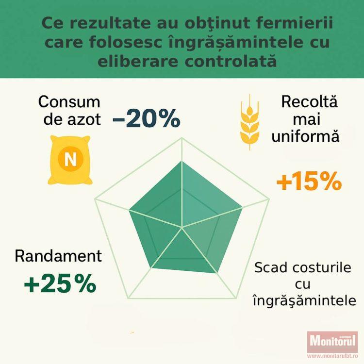 Datele adunate şi de ceilalţi fermieri care folosesc produsele de la Bucecea confirmă tendința. Consumul de îngrășăminte scade cu 15-25%, pierderile prin levigare se reduc cu peste 30%, iar recoltele sunt mai bune. Mix-ul de reţete şi tehnologii digitale creşte randamentul total cu până la 25%.