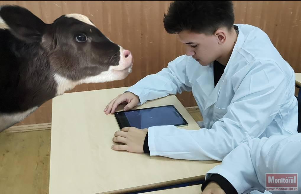 La Liceul Tehnologic „Alexandru Vlahuță” din Șendriceni, viitorii fermieri lucrează cu senzori, platforme digitale și aplicații care monitorizează fiecare animal. Ziua de lucru începe nu în fermă, ci în sala de clasă. Elevii deschid tabletele, iar pe ecran apare tabloul complet: starea de sănătate a efectivului, activitatea zilnică, rumegarea, reproducția, probabilitatea de gestație.