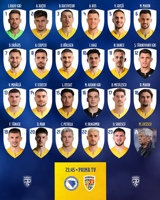 Echipa naţională a României întâlneşte Bosnia-Herţegovina, sâmbătă, la Zenica, de la ora 21.45, în Grupa H a calificărilor europene pentru Cupa Mondială. Partida va fi transmisă de Prima TV.